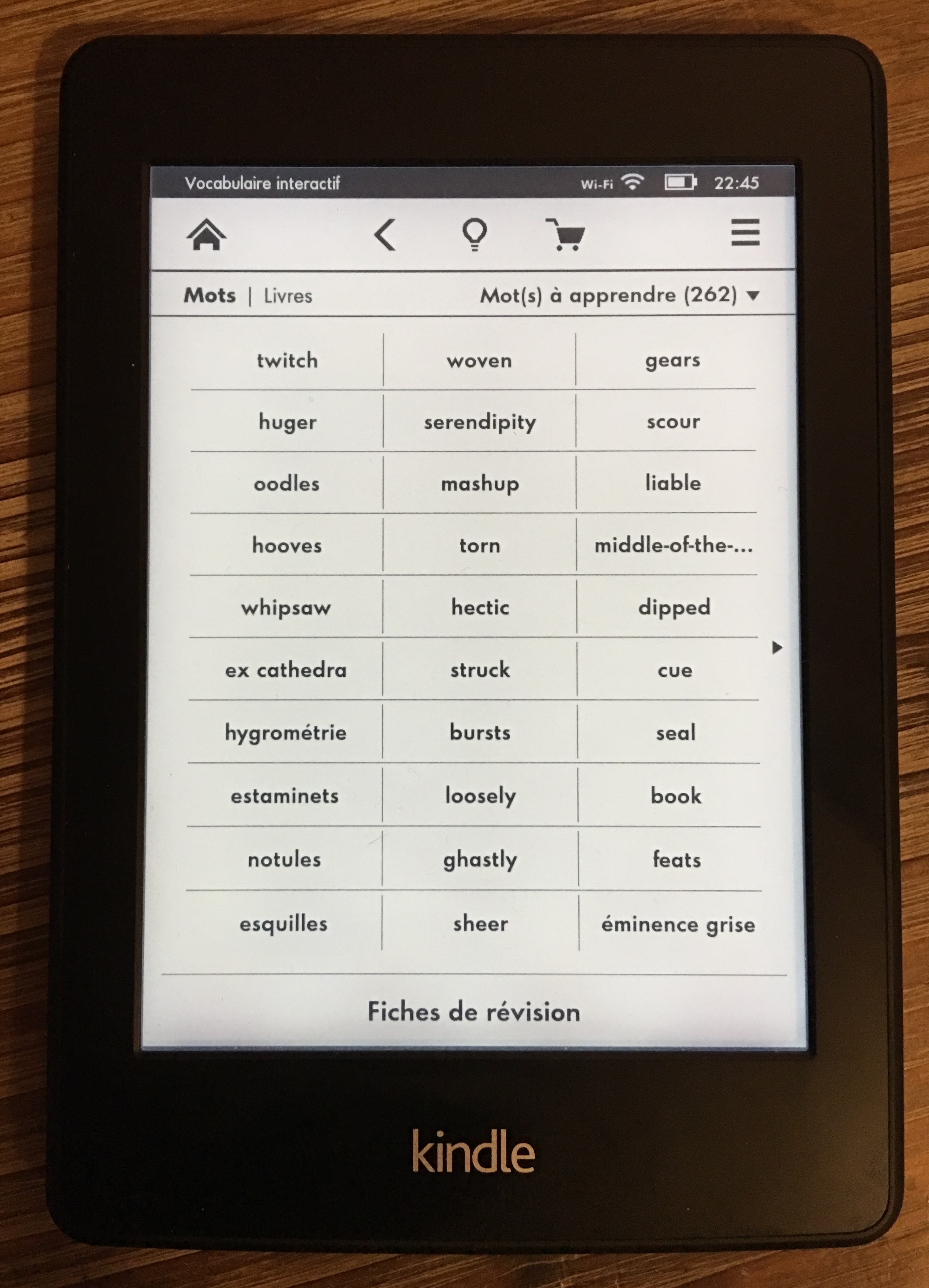 On peut même enregistrer le vocabulaire recherché dans le dictionnaire. On se retrouve alors avec un nouveau livre contenant les mots ayant fait l’objet d’une recherche. Très pratique pour réviser, une fois la lecture terminée.