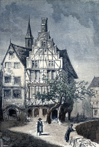 Il demeurait dans sa petite maison de Königstrasse, une habitation moitié bois, moitié brique, à pignon dentelé ; elle donnait sur l’un de ces canaux sinueux qui se croisent au milieu du plus ancien quartier de Hambourg que l’incendie de 1842 a heureusement respecté.